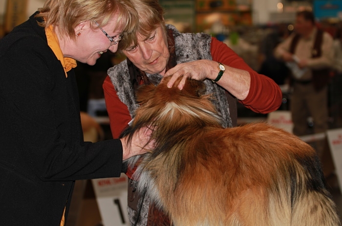 Menschen und gute Freunde, sahen und knuddelten tolle Shelties