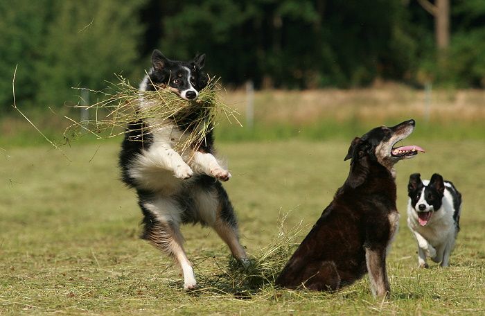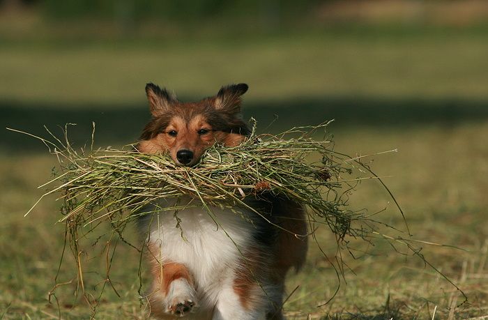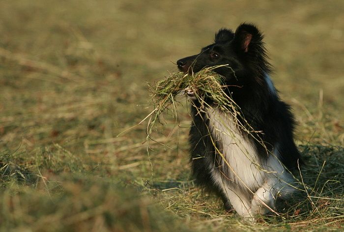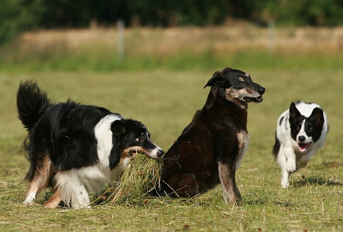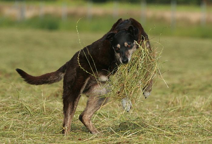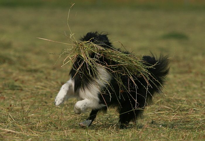 Weide ist gemäht, das Heu wartet aufs wenden, die Hunde haben