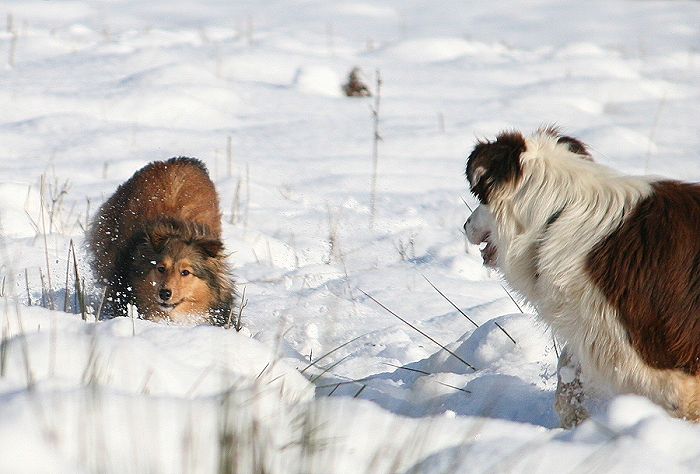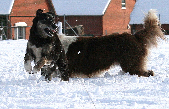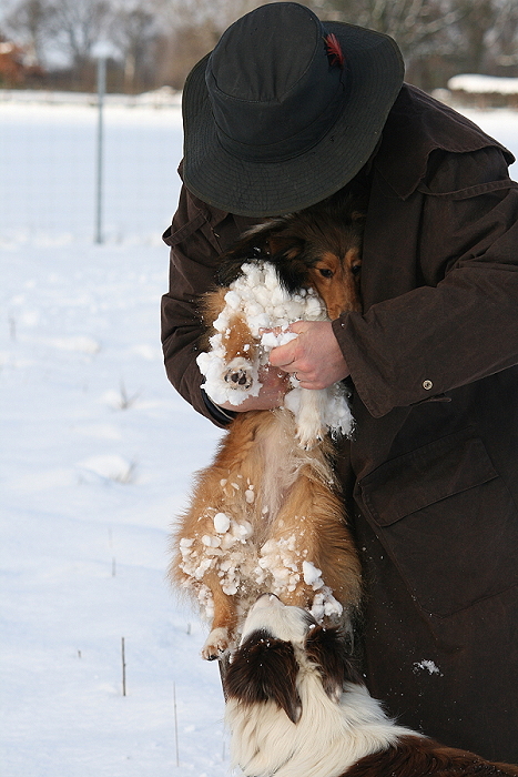 weiße Pracht und Noly muss leider gerade eine Zerrung auskurieren.