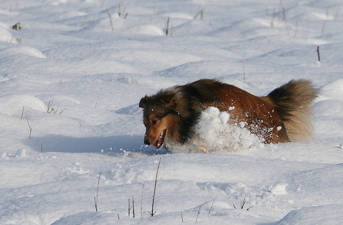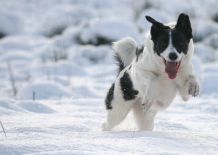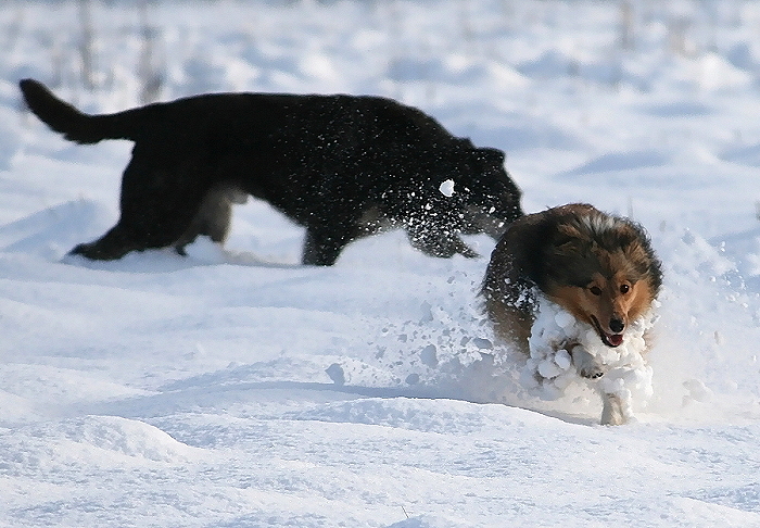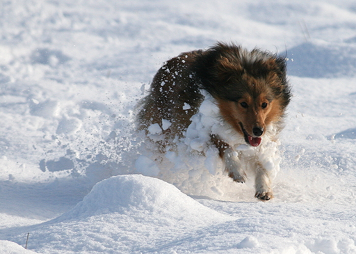 fand auch mit Schneebällen im Fell kann Hund prima flitzen: