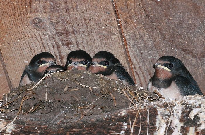 Juni 2010: Eine Schwalbe macht noch keinen Sommer, fünf Schwalben"welpen" in der alten Diele aber schon: