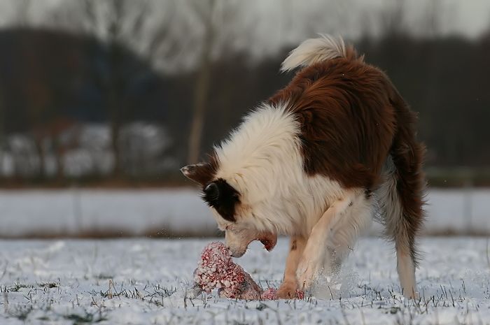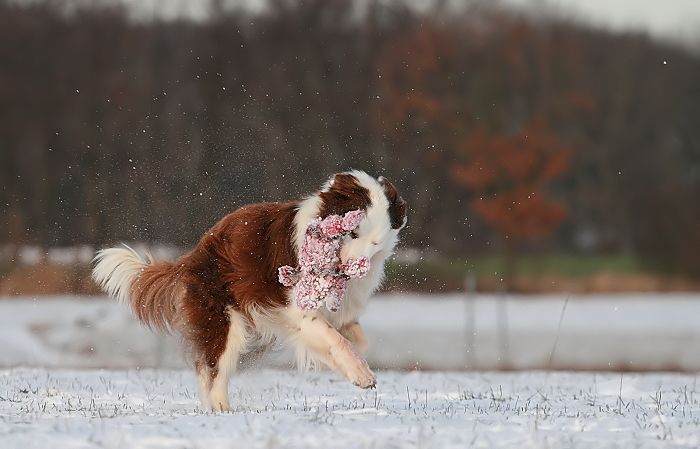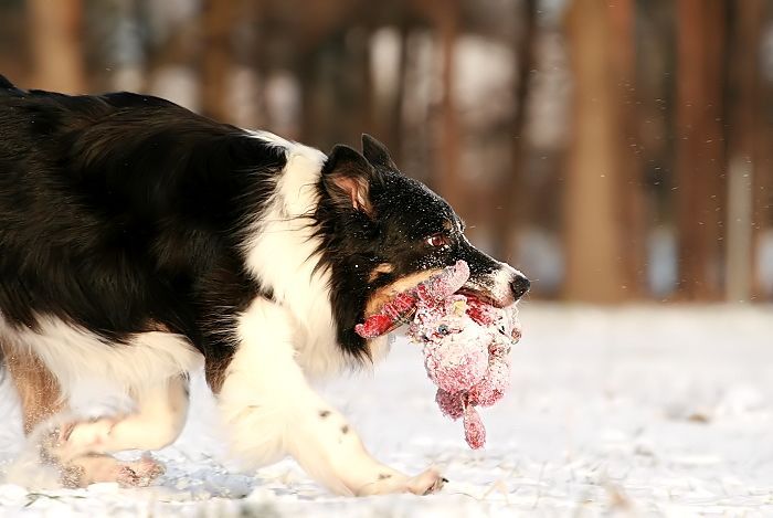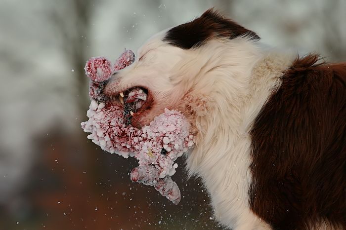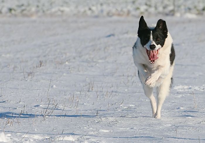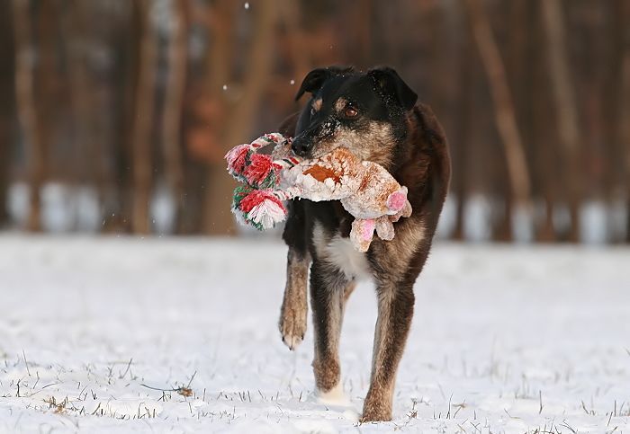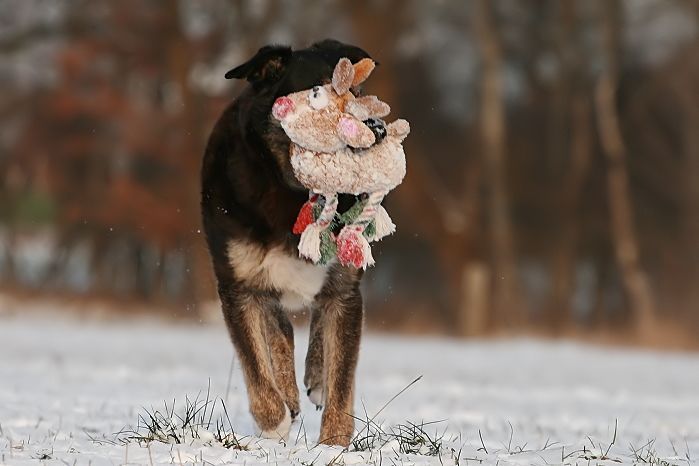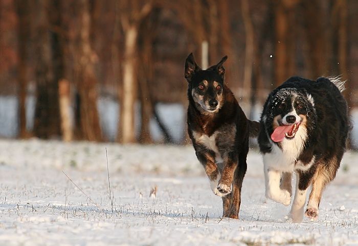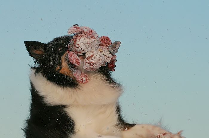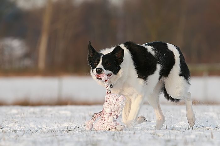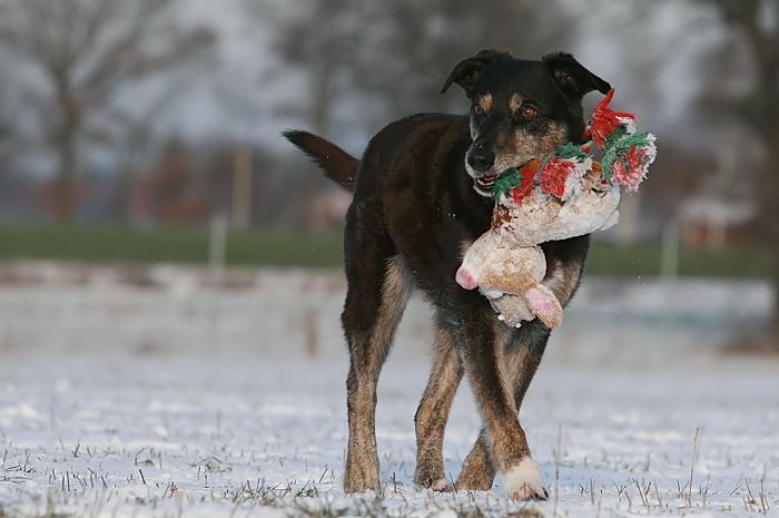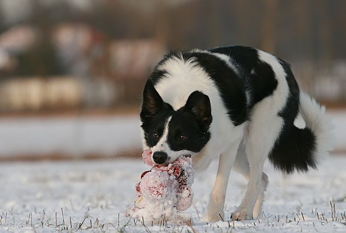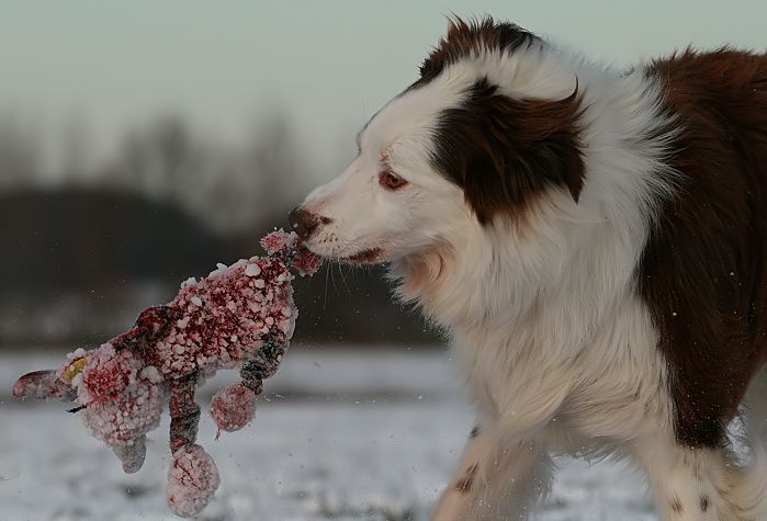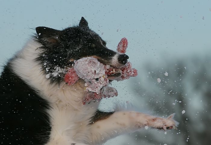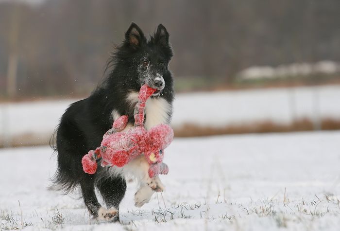 mit großer Kraftanstrengung fingen die kleinen Arbeitshunde