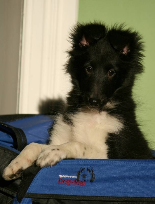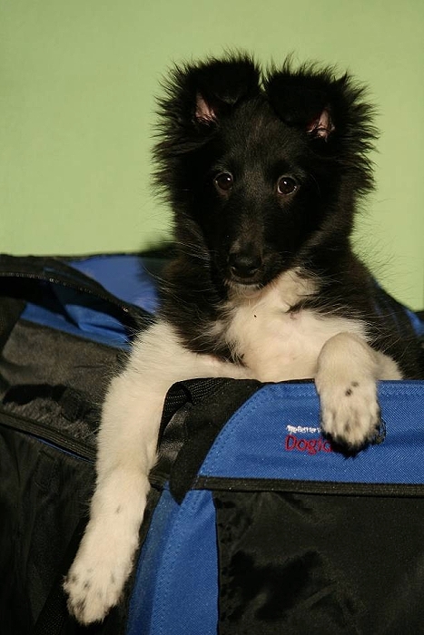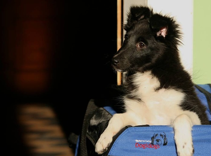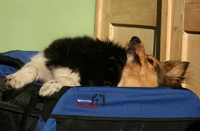 Wer hat behauptet Hunde fänden Hundeboxen doof, Naimi findet es witzig immer seitlich reinzuflitzen und oben wichtig rauszuschauen