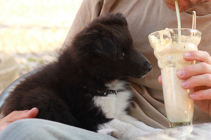 und fand im Eiscafé, dass Eis und Sahne zur Welpennahrung