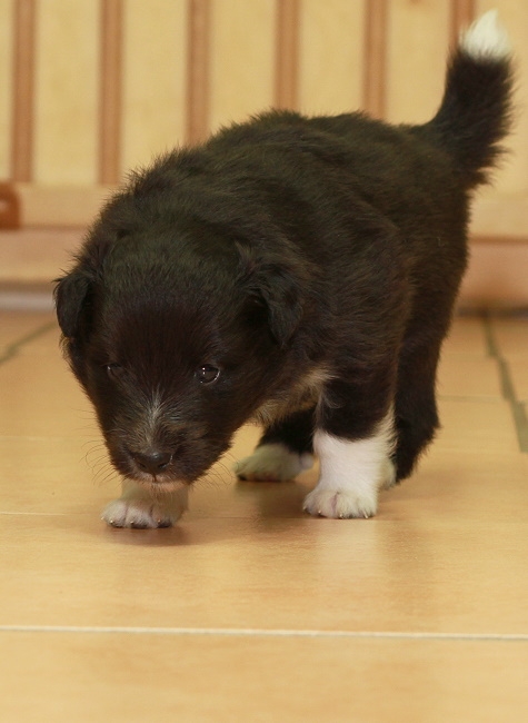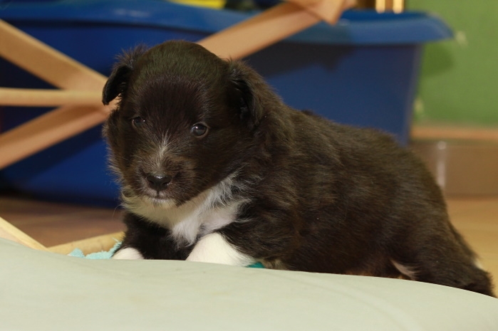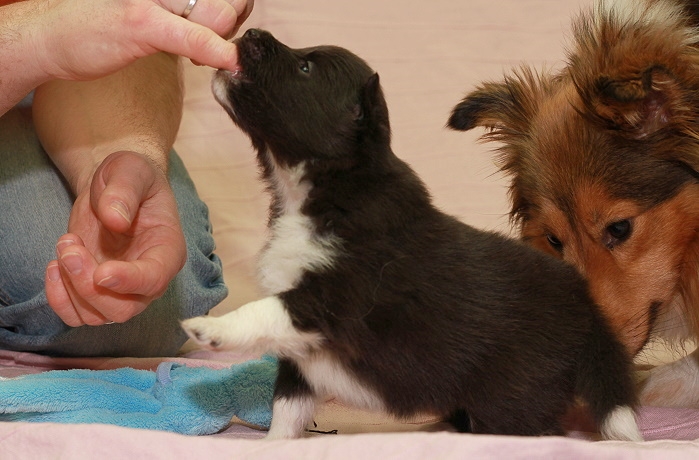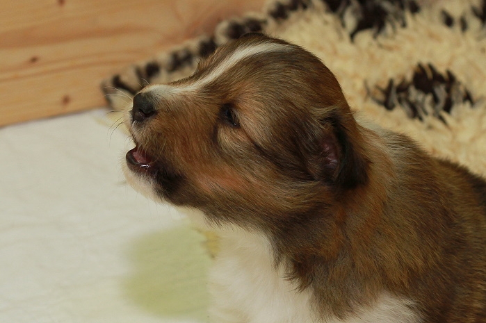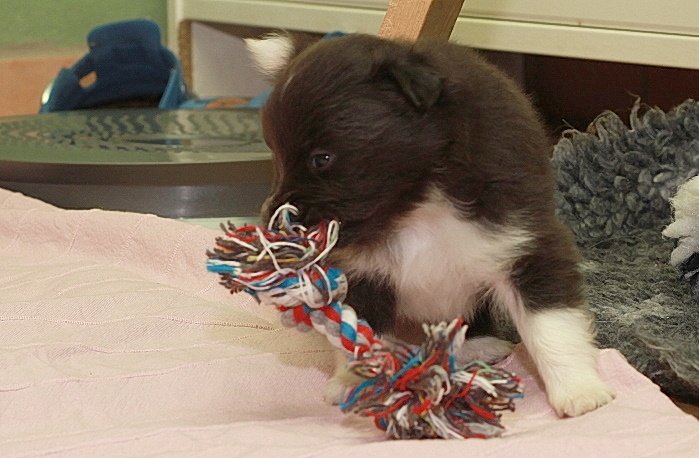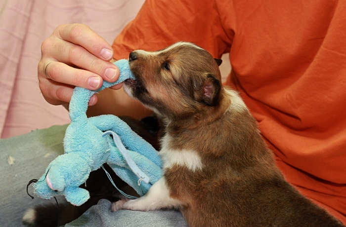 sich im Apportieren und wog mit 3 Wochen 691 Gramm.