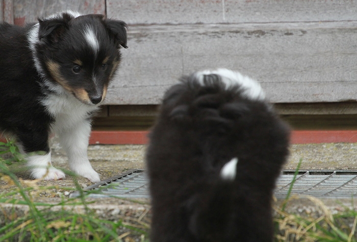 das Gitter zu laufen und wundert sich offenbar, dass ihr großer