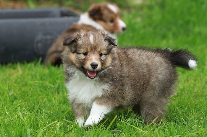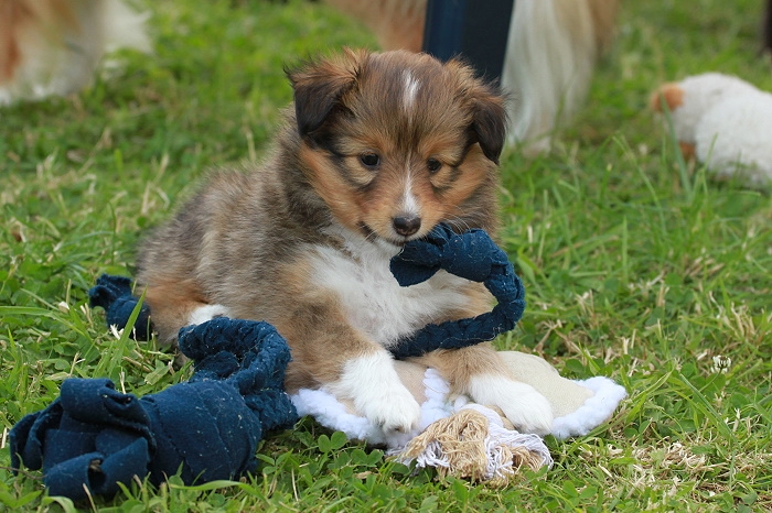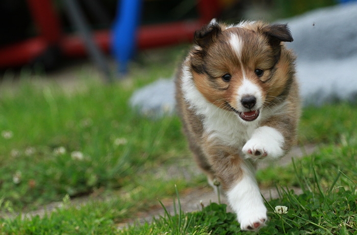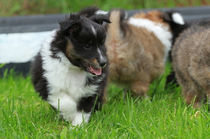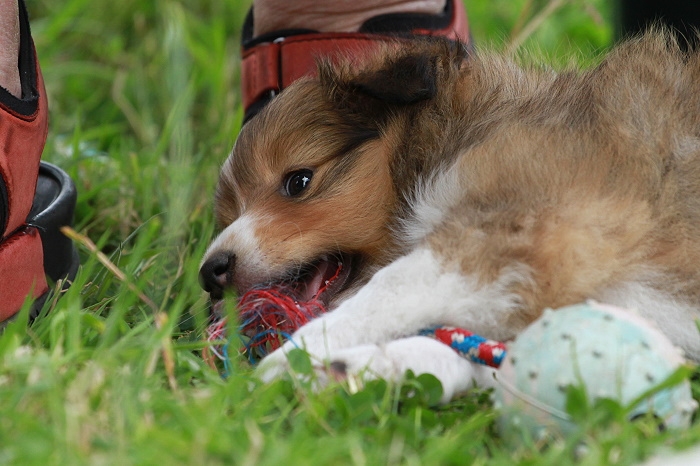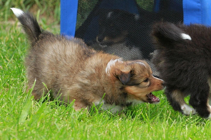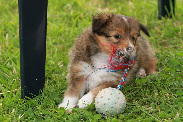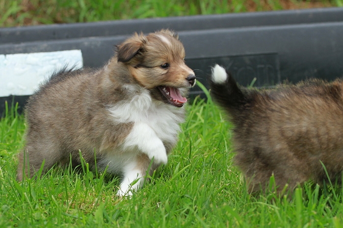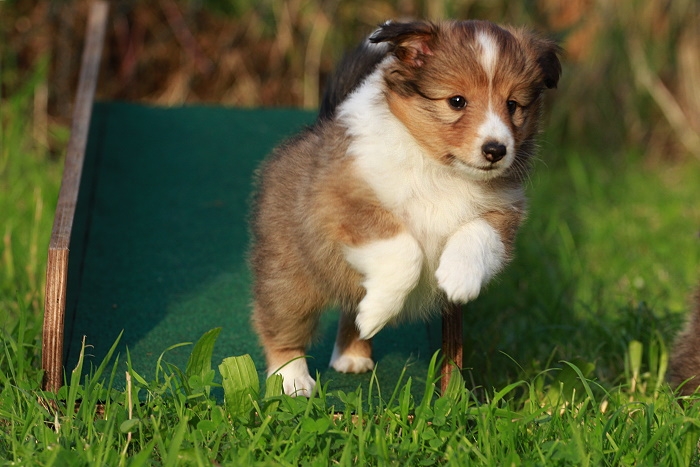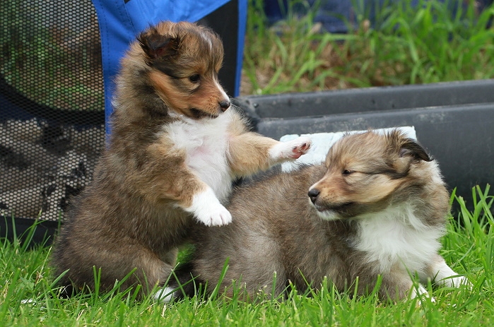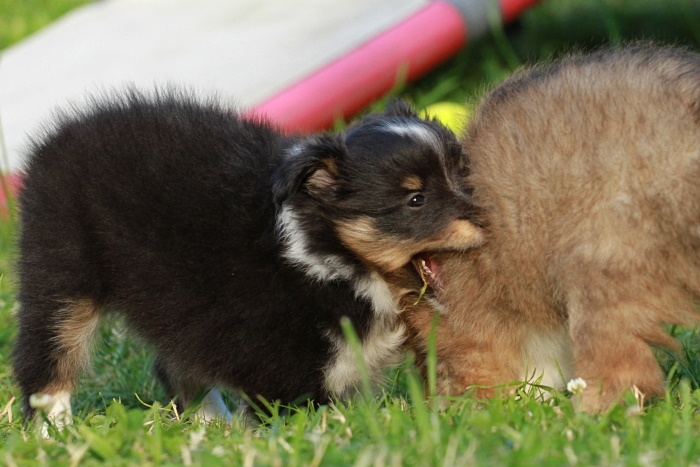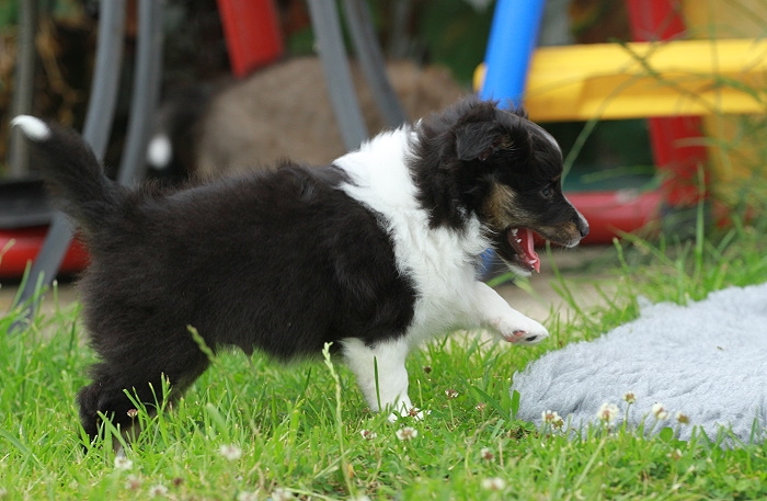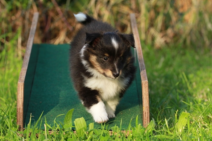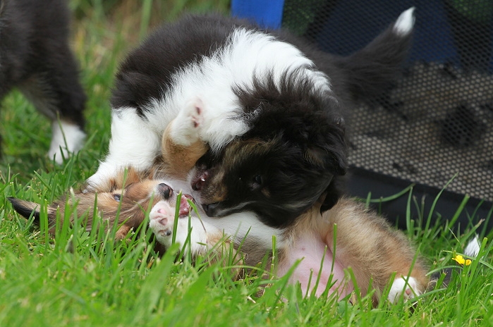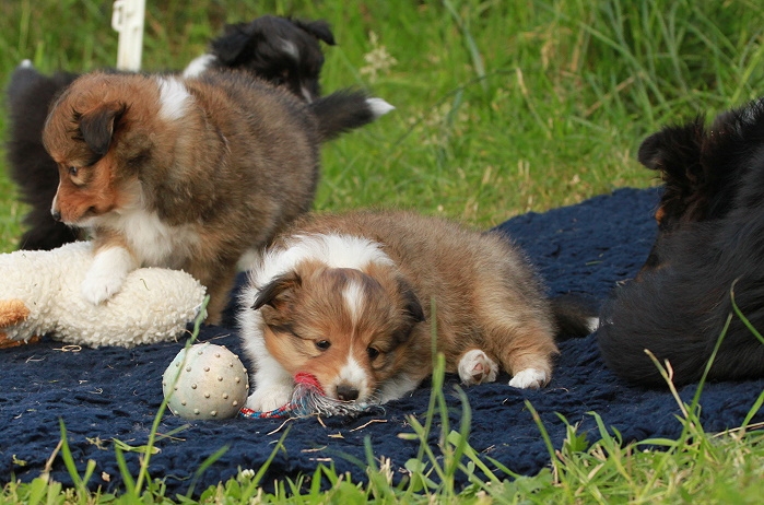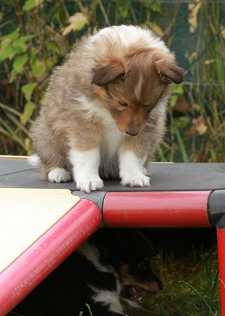 Welpenwippe war neu im Auslauf, alle Fünf fanden sie sofort