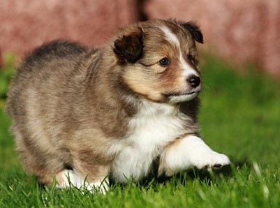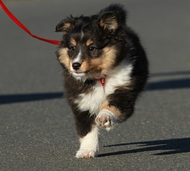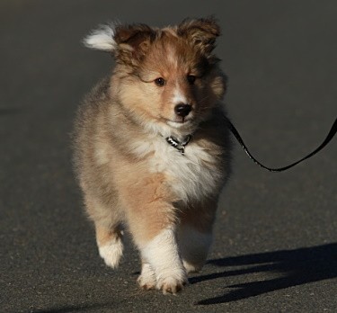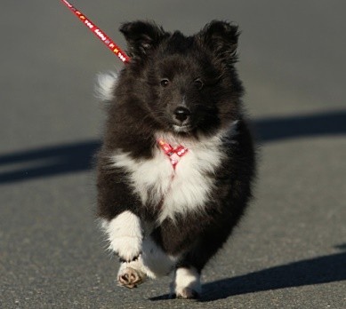 schnell sheltiewohl; der fröhliche Frekjo hüpft nun