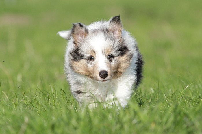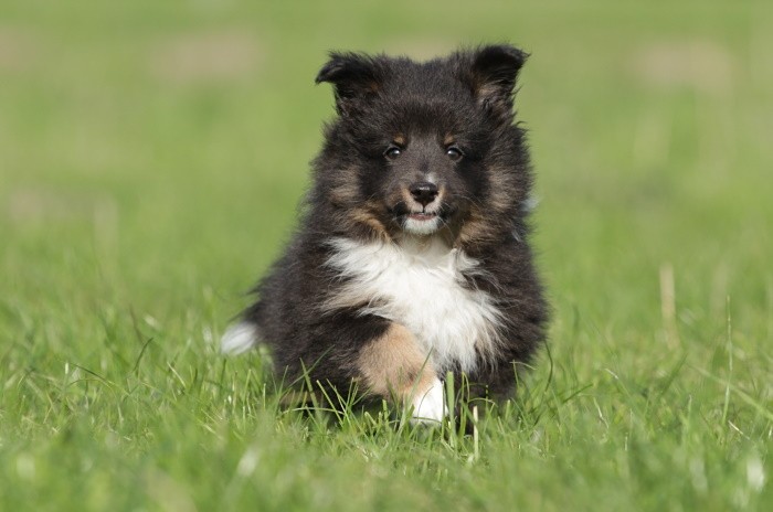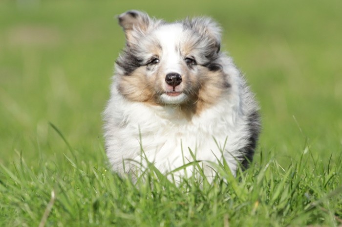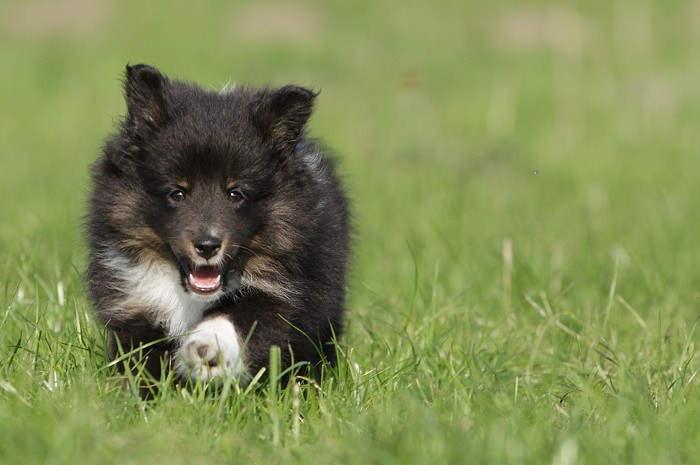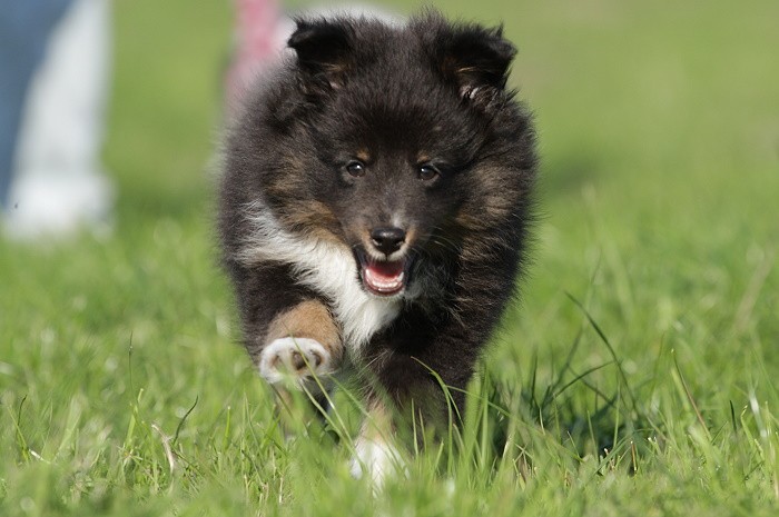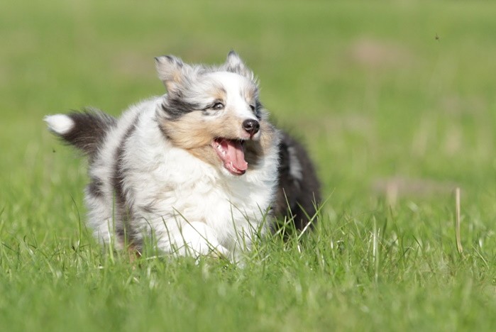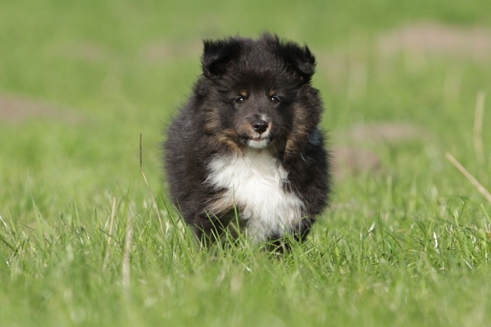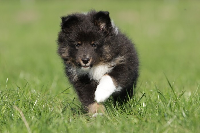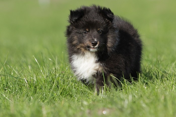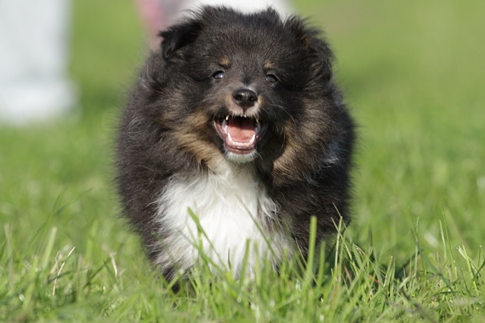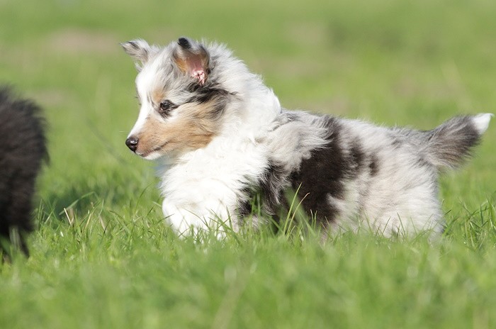 hat auf der neuen Wippe im Welpenspielplatz genauso viel Spaß