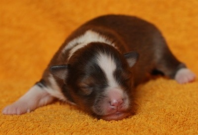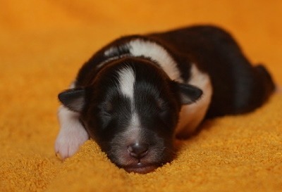 tricolour. Beide Welpen waren sofort sehr agil und nuckelten schon