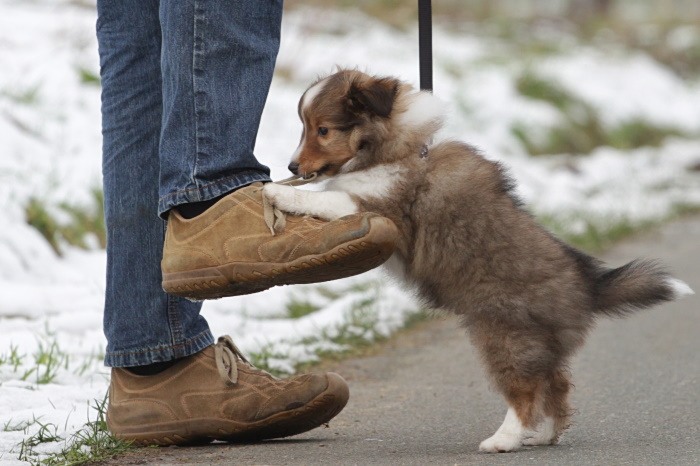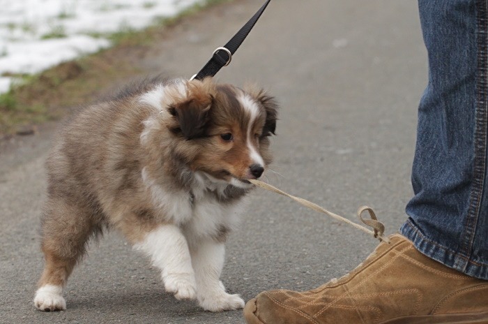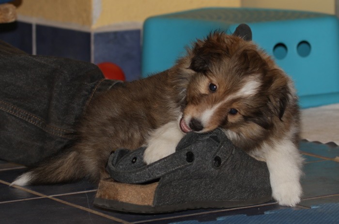 und entdeckte schnell, was Welpe mit der Leine noch so alles Lustiges