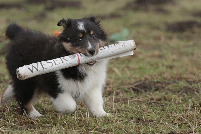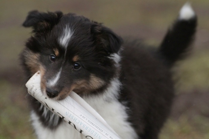 Hadia denkt natürlich auch daran, dass Frauchen die Zeitung