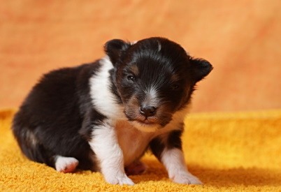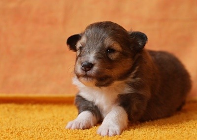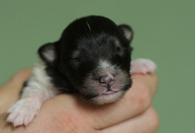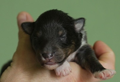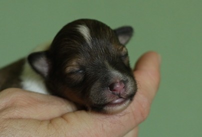 (einer tricolour und einer d`zobel-weiß). Fünf Welpen