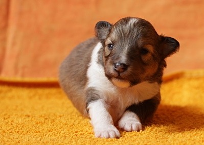Welpen im Alter von 14 Tagen haben alle sechs die Augen