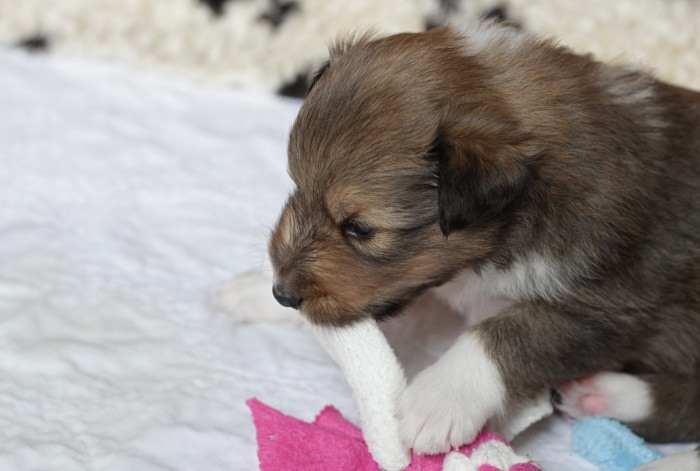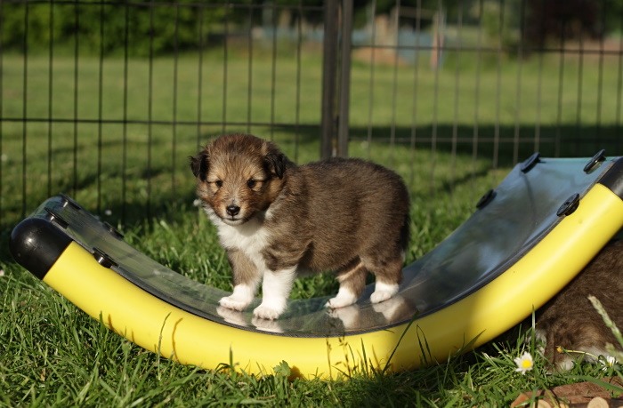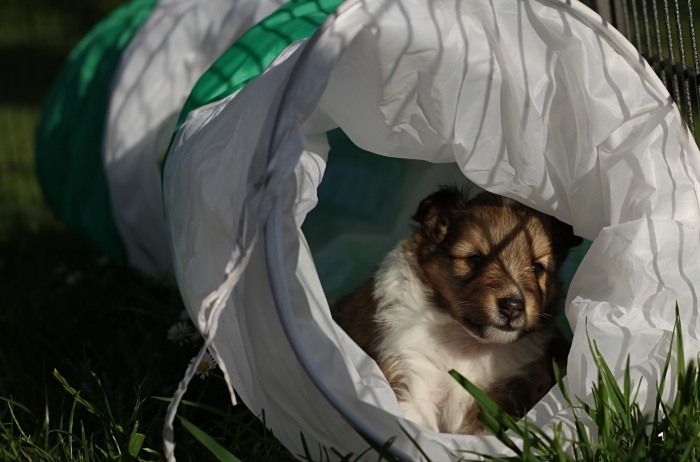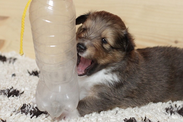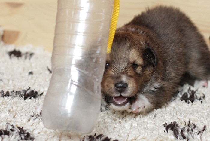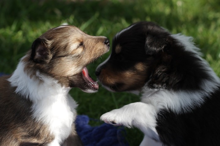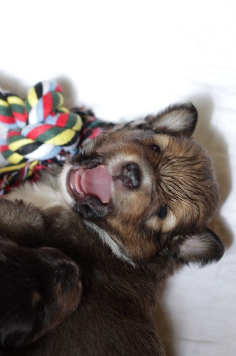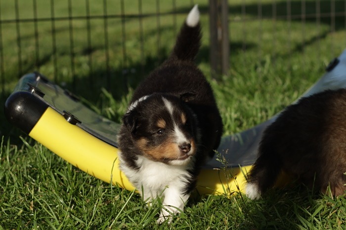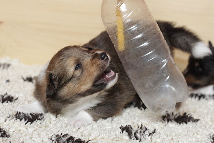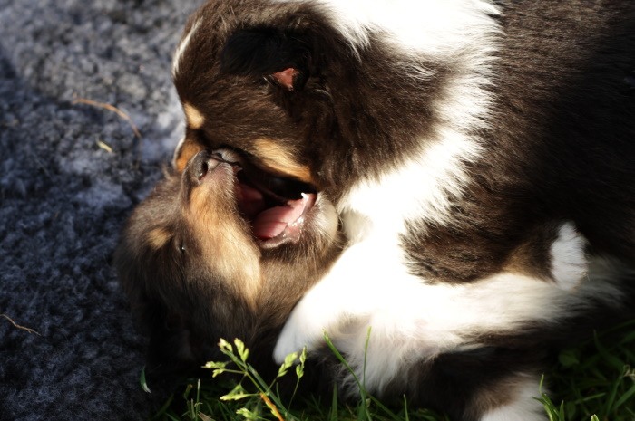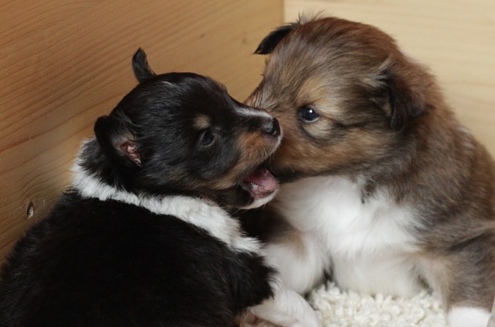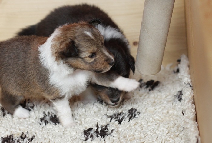drinnen spielen alle Welpen viel miteinander, ...