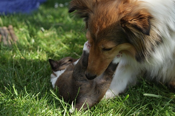 Wie bei jedem Wurf kümmern sich alle um die Welpen. Während