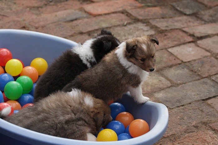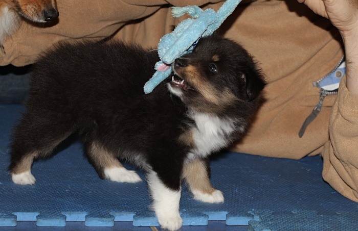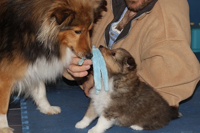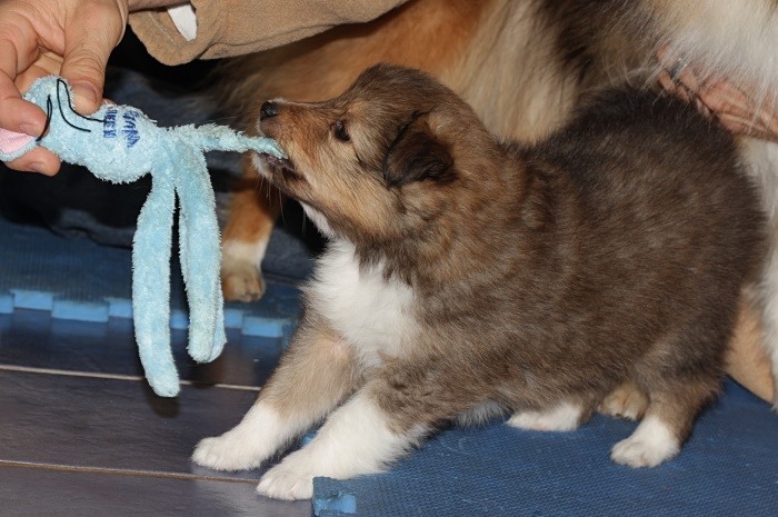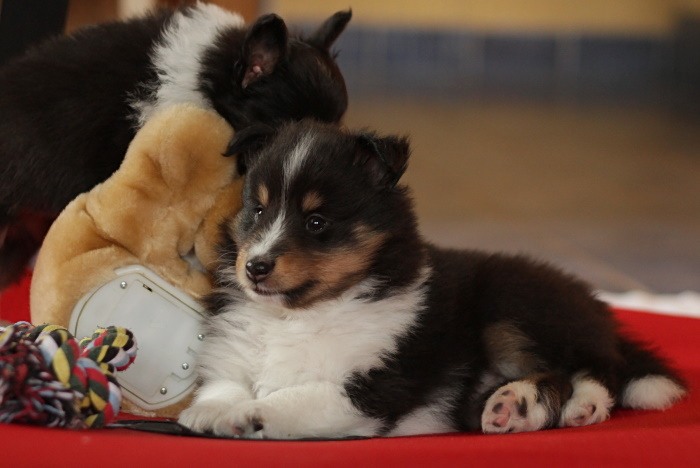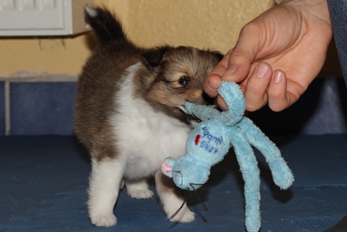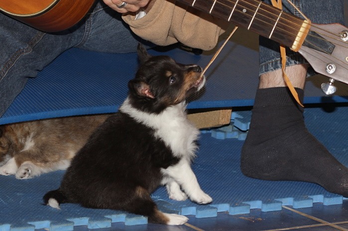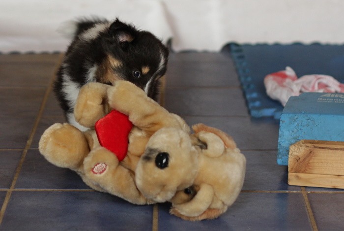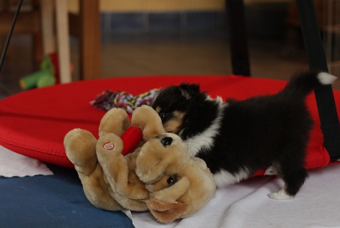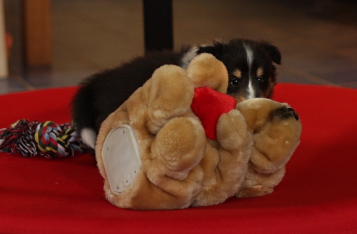 den laut singenden und tanzenden Stoffhund zeigten unsere Welpen