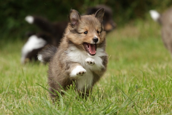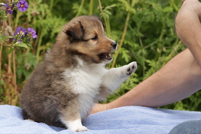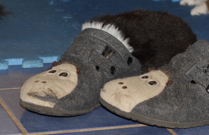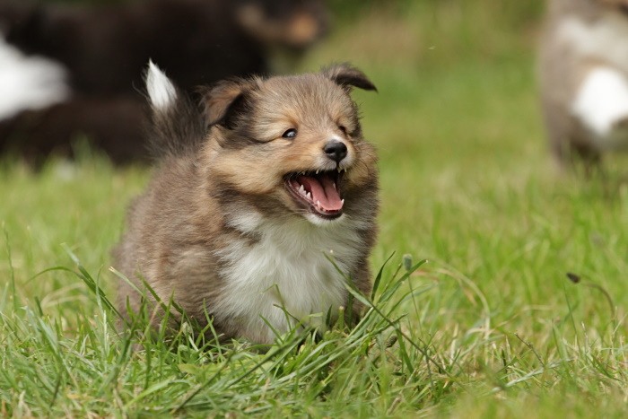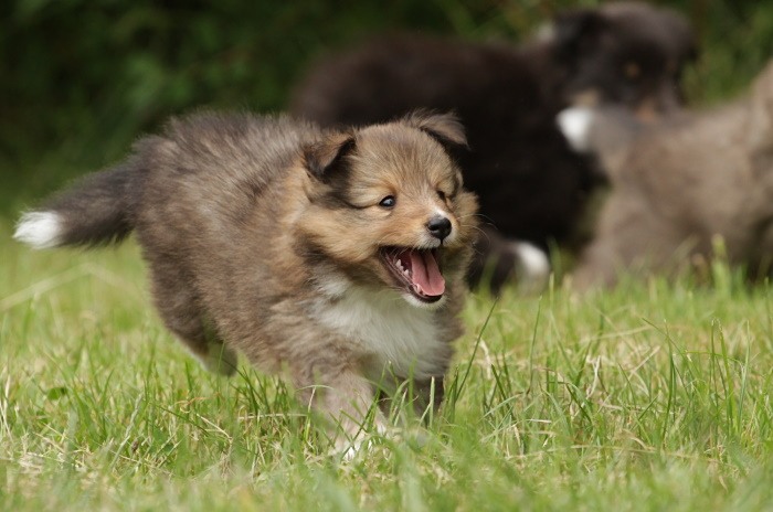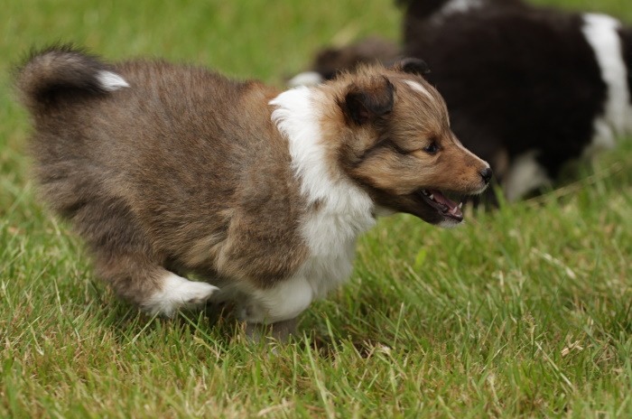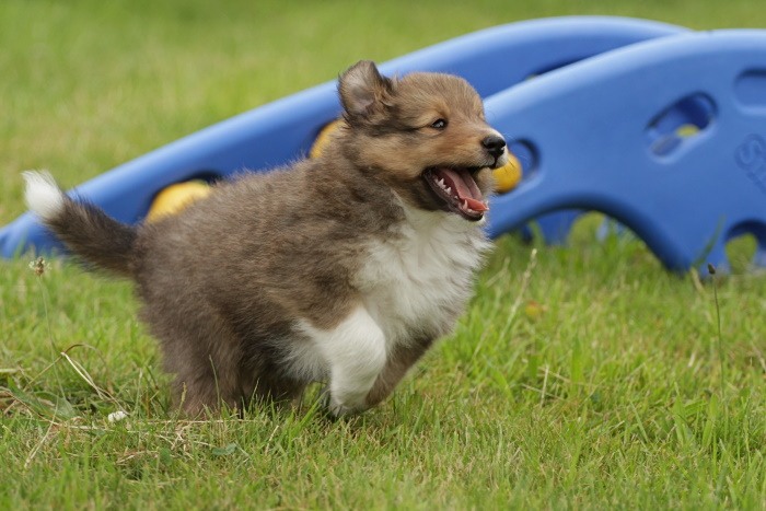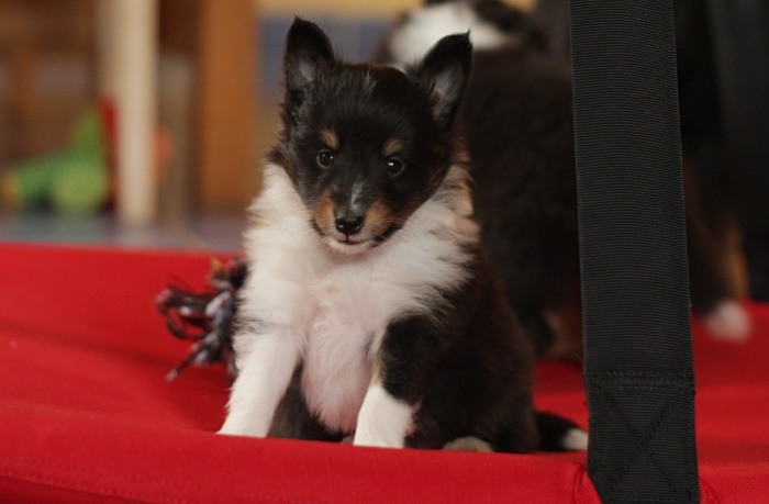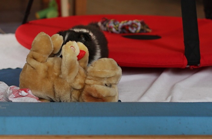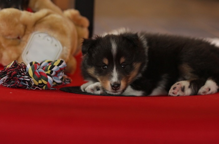 den laut singenden und tanzenden Stoffhund zeigten unsere Welpen