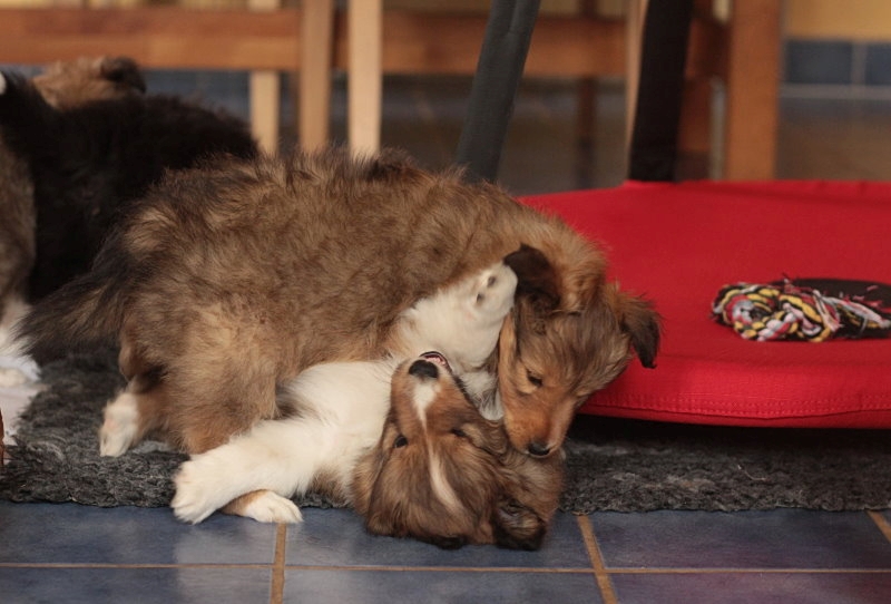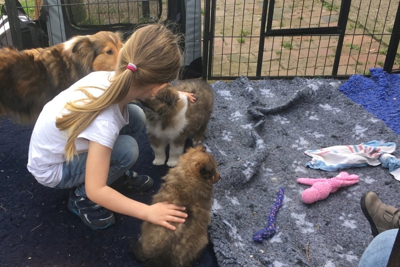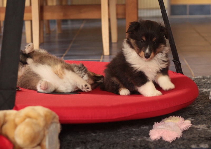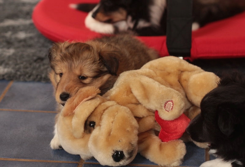 schlechtem Wetter hatten sie im Welpenspielplatz drinnen viel