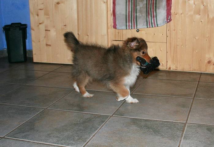 in einer Clickerübungsrunde gelernt und spielt viel mt dem