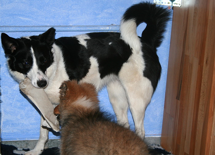 mit uns Freunde mit ihrem Hunderudel besucht und kam prima mit