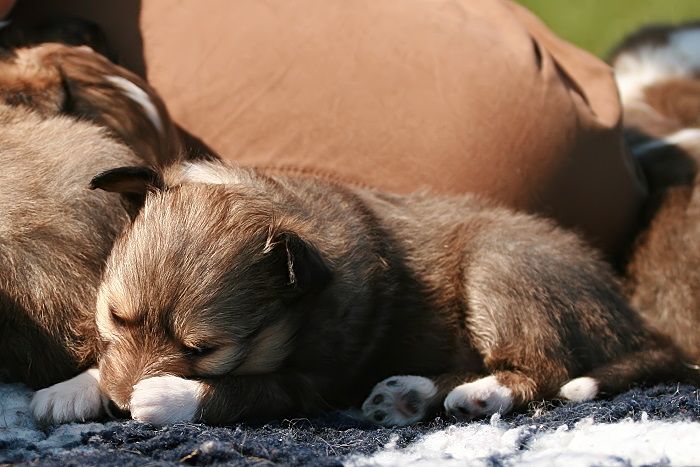 fröhliche Quartett im Alter von 33 bis 36 Tagen: