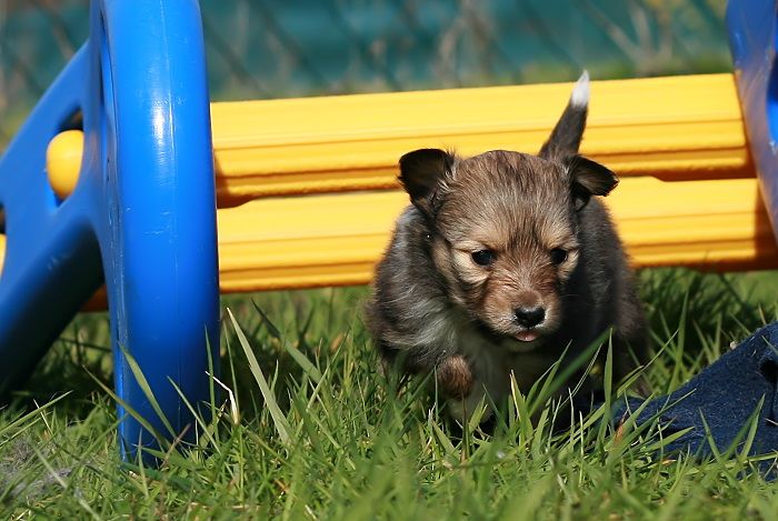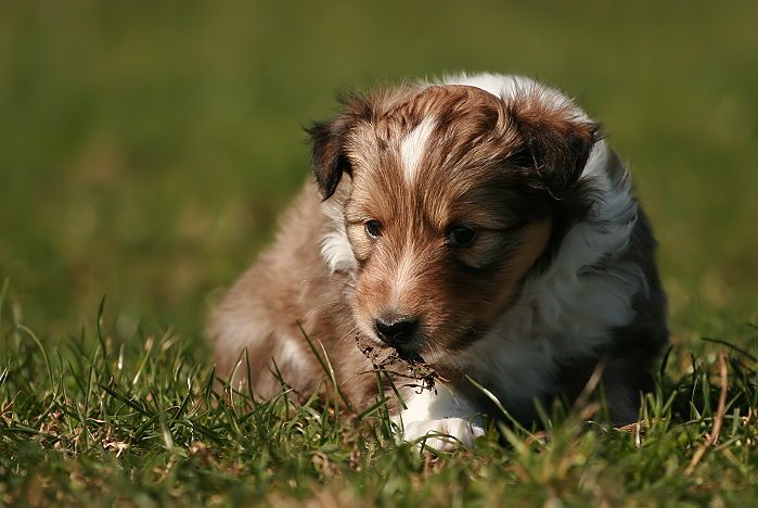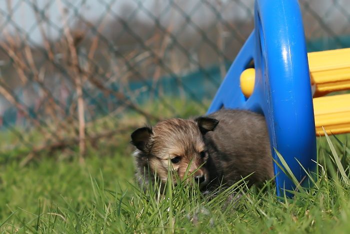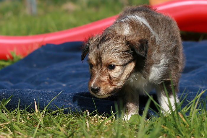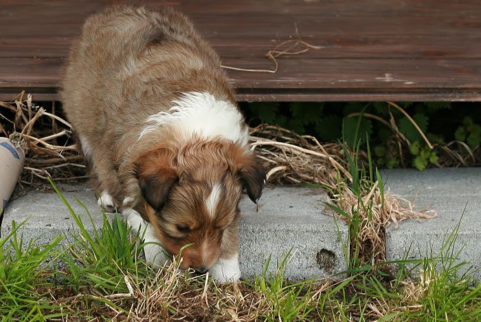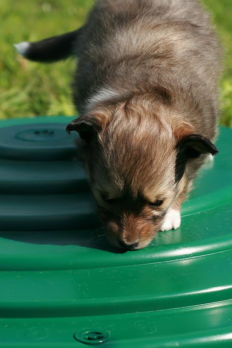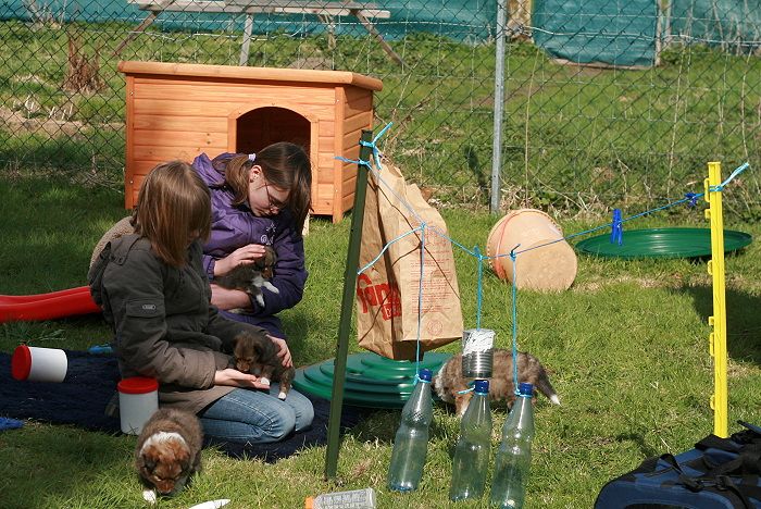 Welpen waren viel draußen und erkundeten Garten, Weide und