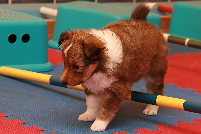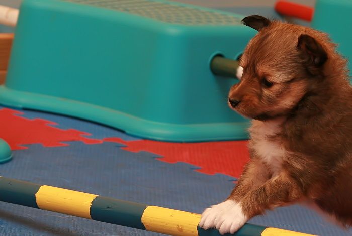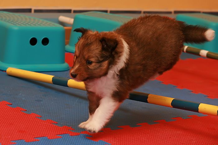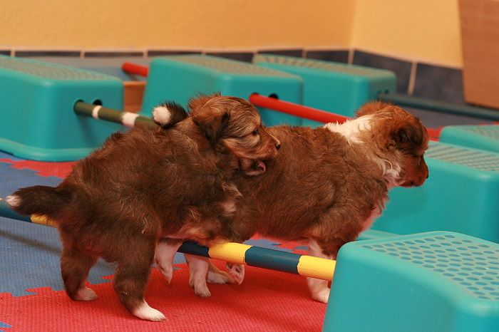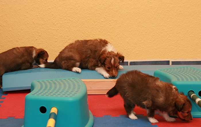 mit dem Agilitytraining beginnen, aber im Spiel probieren Welpen