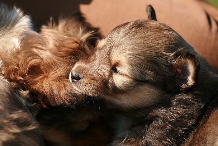 die Schwestern ausprobierten, was Welpe mit denen wohl anfangen