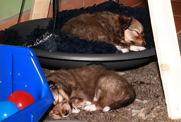 schläft die Bande im Welpenzimmer, die Schaukel bleibt hier