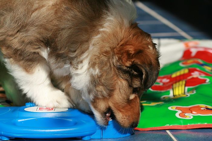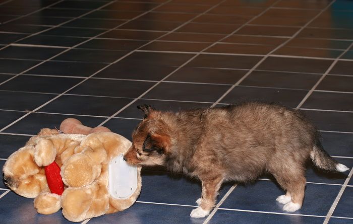 gibt schon mal Bescheid, dass Mabel einen Ball gefunden hat.