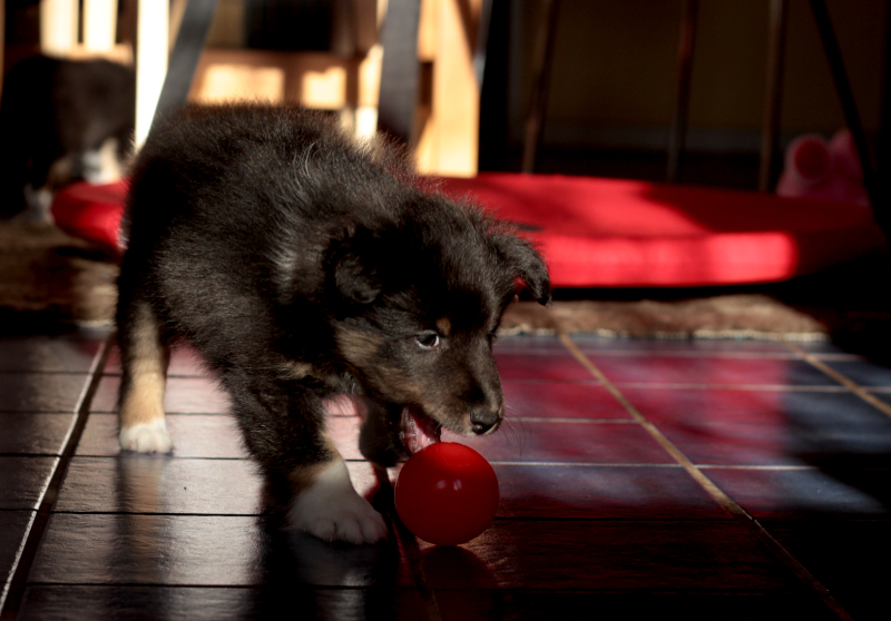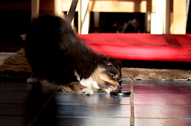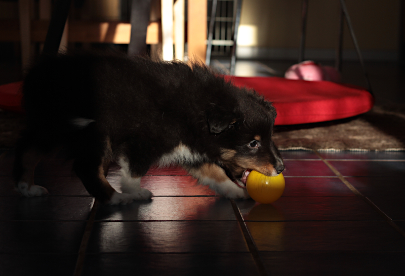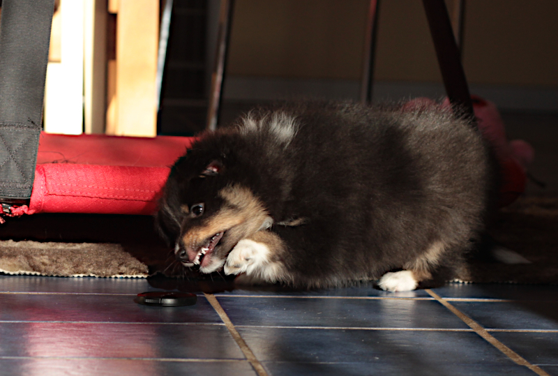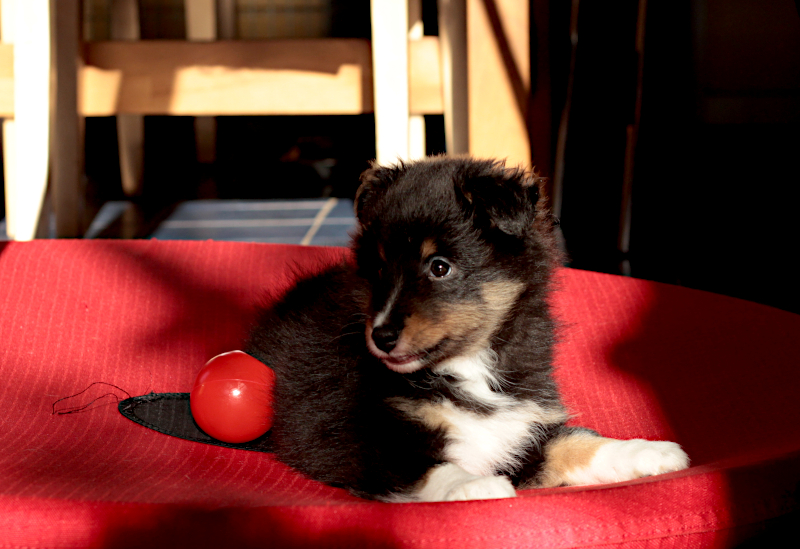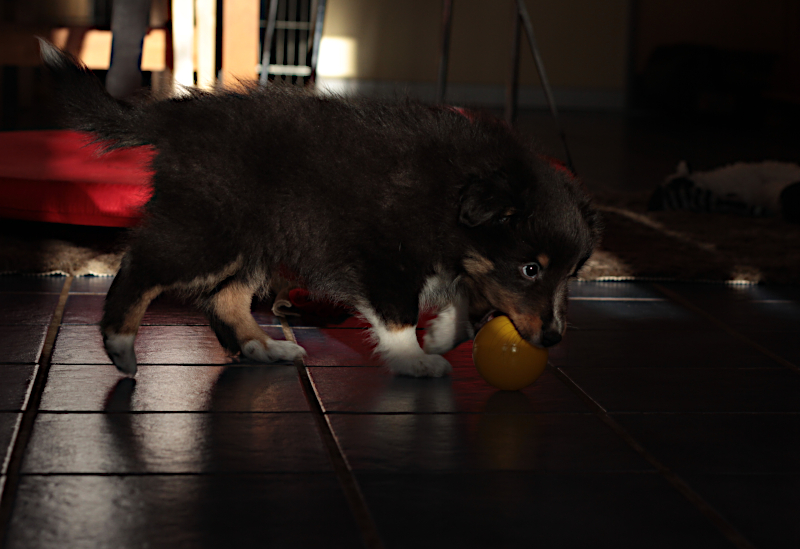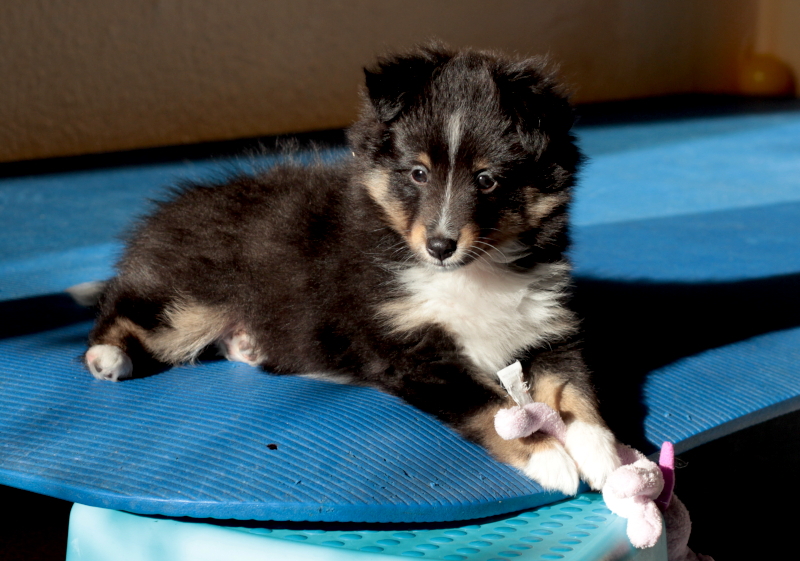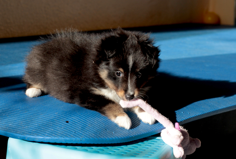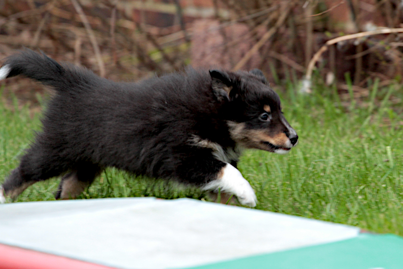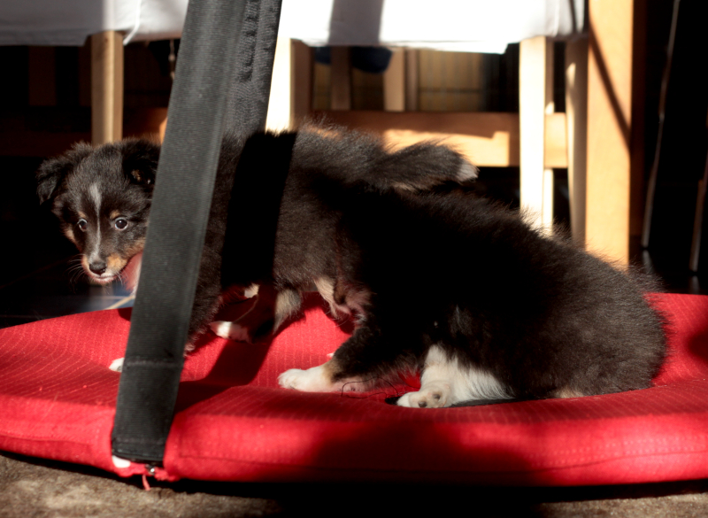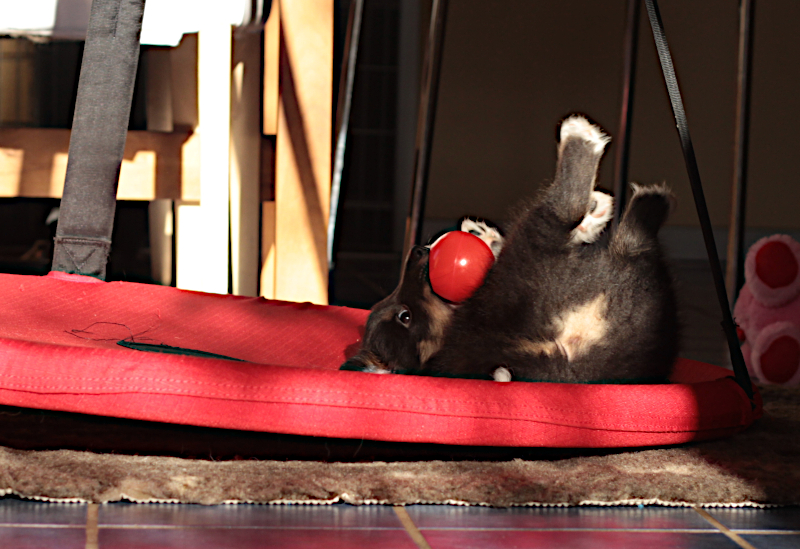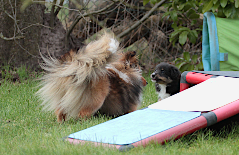 und ruht sich zwischendurch auf dem Schaukelbrett aus.