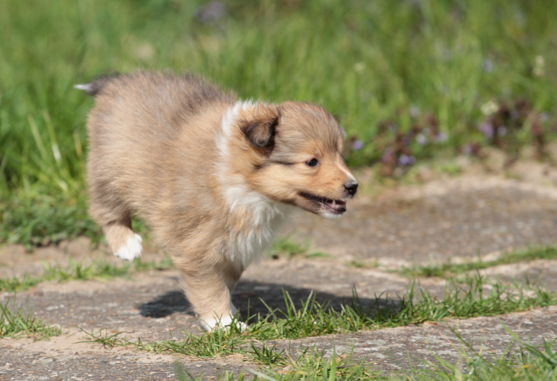 und flitzte im Vorgarten mit viereinhalb Wochen sofort begeistert
