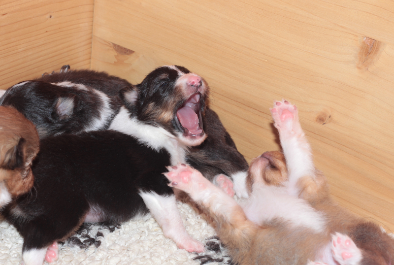 aus der Wurfkiste im Alter von sechs bis sechzehn Tagen: