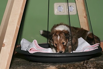 Im Internet wurden wir fündig: Eine Welpenschaukel - schnell