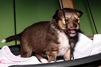 ins Welpenzimmer, dass sie vielleicht noch zu klein dafür
