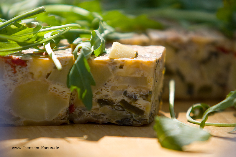 schneiden. Mit Salatblättern z.B. Rukula servieren.